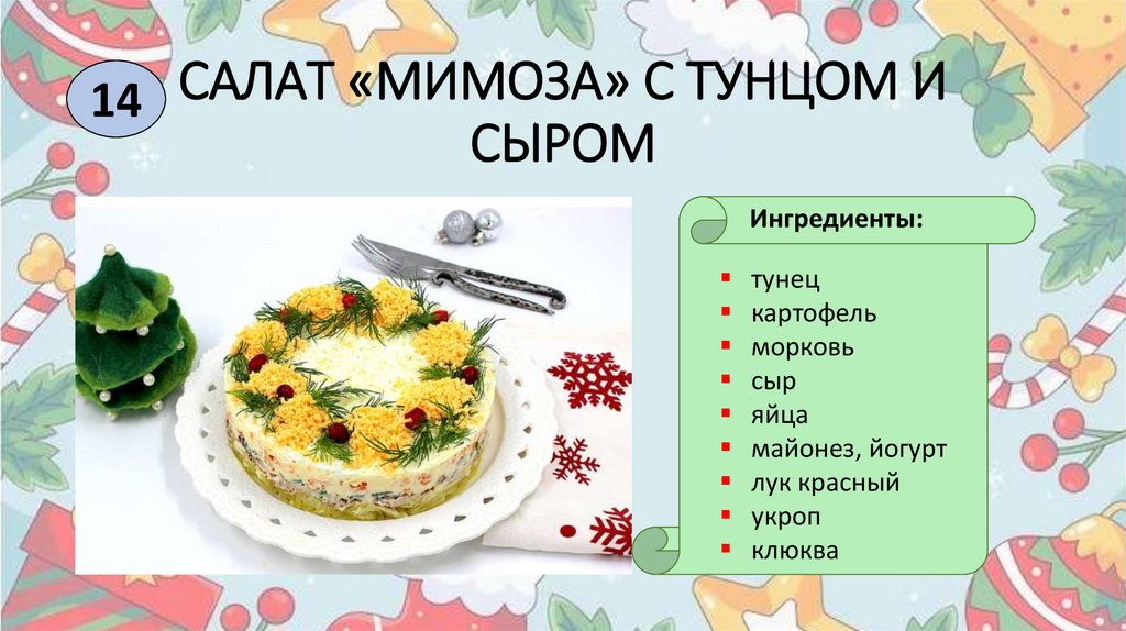 34. САЛАТ «МИМОЗА» С ТУНЦОМ И СЫРОМ