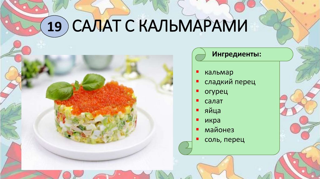 19 САЛАТ С КАЛЬМАРАМИИнгредиенты:
