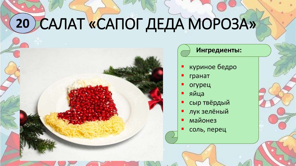 20САЛАТ «САПОГ ДЕДА МОРОЗА»
