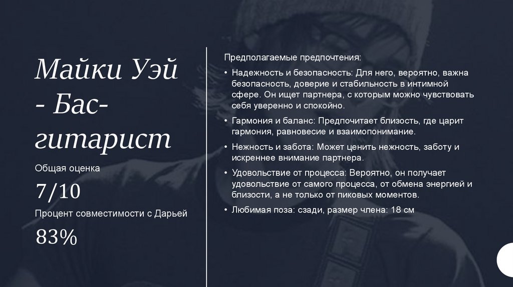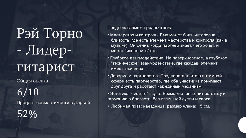 музыке). Он ценит, когда партнер знает, чего хочет, и