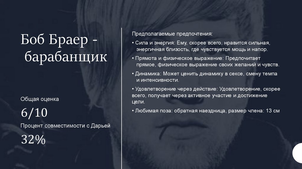 Боб Браер барабанщикПредполагаемые предпочтения: