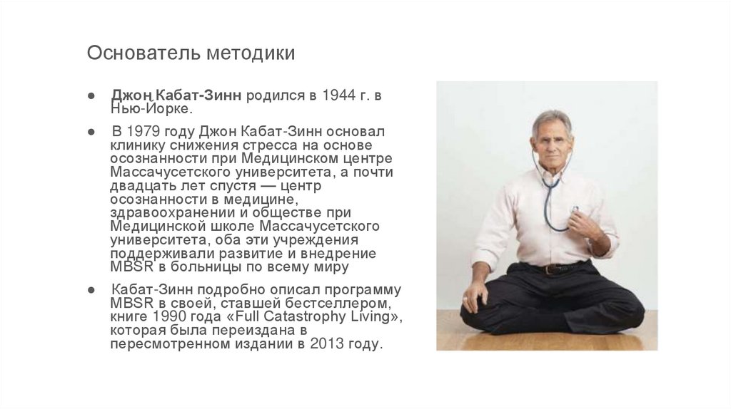 1970-х годах профессором Джоном Кабат-Зинном, MBSR использует