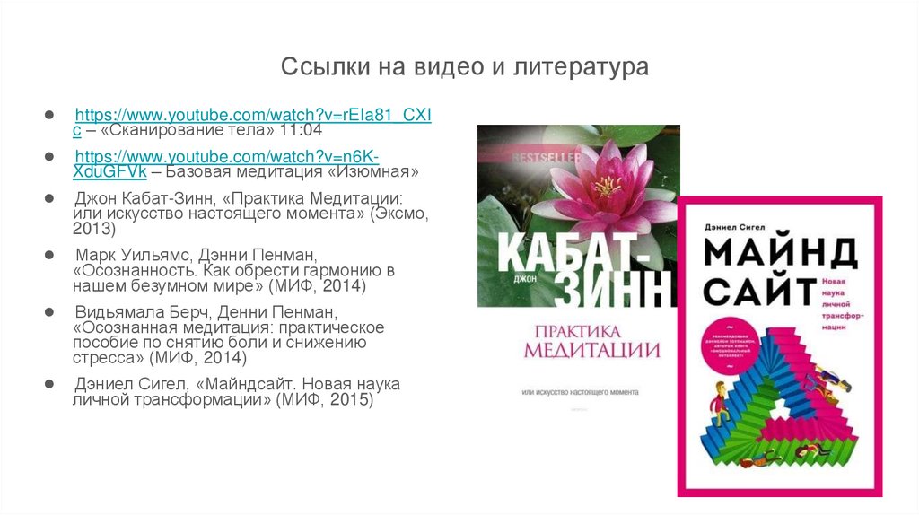 Видео с техникой “Медитативное дыхание” // время просмотра с 8:50 до 9:53 // URL: