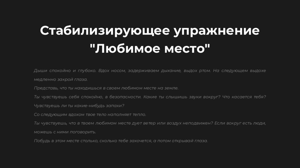 собственном теле снижает уровень тревоги и позволяет не «упасть» в привычный