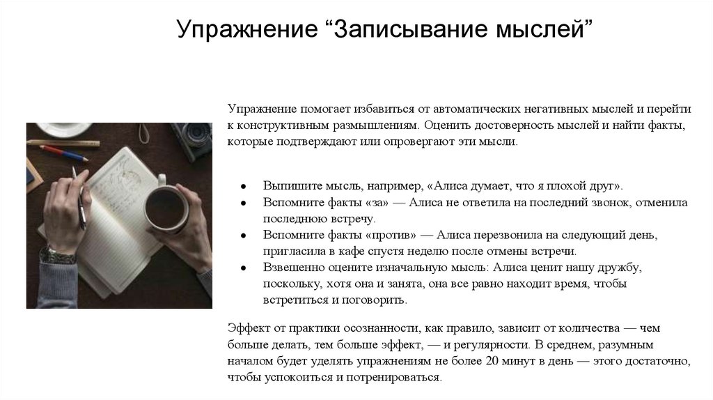 избавление от автоматических мыслей и реакций. Этому способствует практика