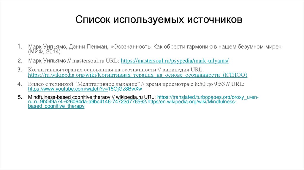 Mindfulness-based cognitive therapy // wikipedia.ru URL: https://translated.turbopages.org/proxy_u/enru.ru.9b049a74-626064da-a9bc4146-74722d776562/https/en.wikipedia.org/wiki/Mindfulnessbased_cognitive_therapy