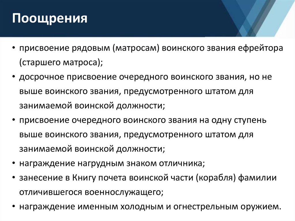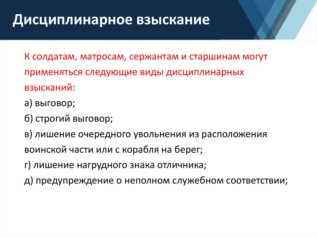 К военнослужащему могут применяться следующие виды
