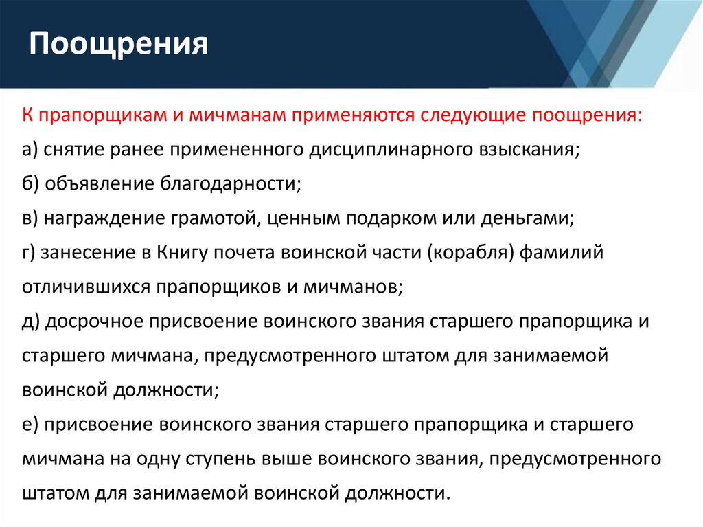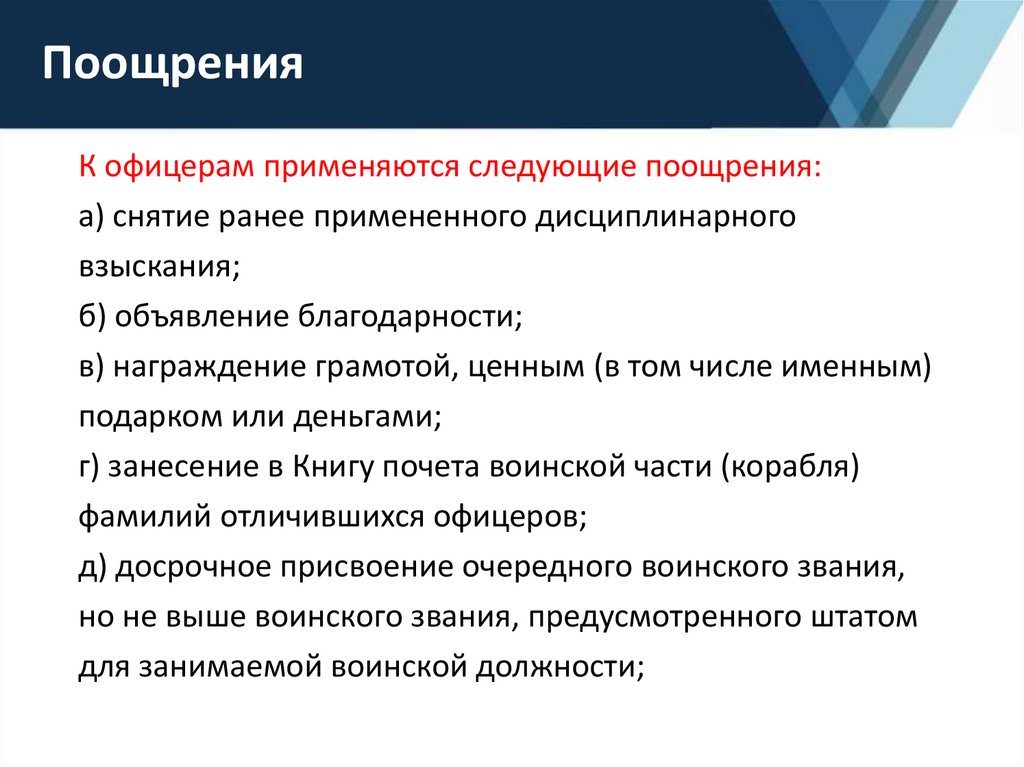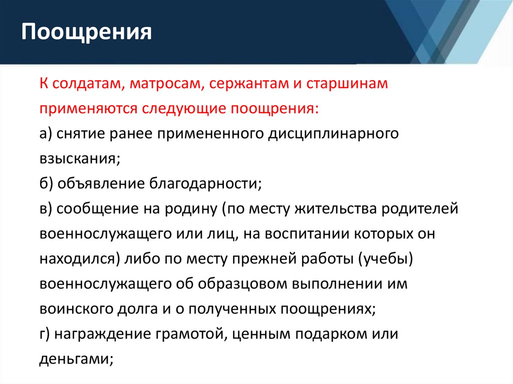 соблюдению, виды поощрений и