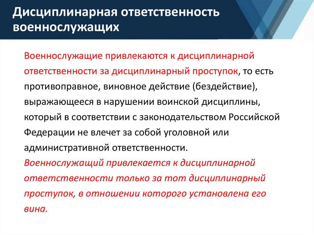Военнослужащие привлекаются к дисциплинарнойответственности за дисциплинарный проступок, то есть
