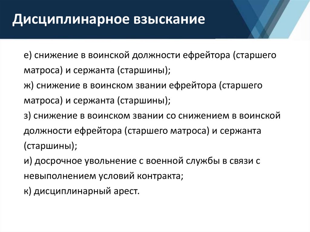г) снижение в воинской должности;