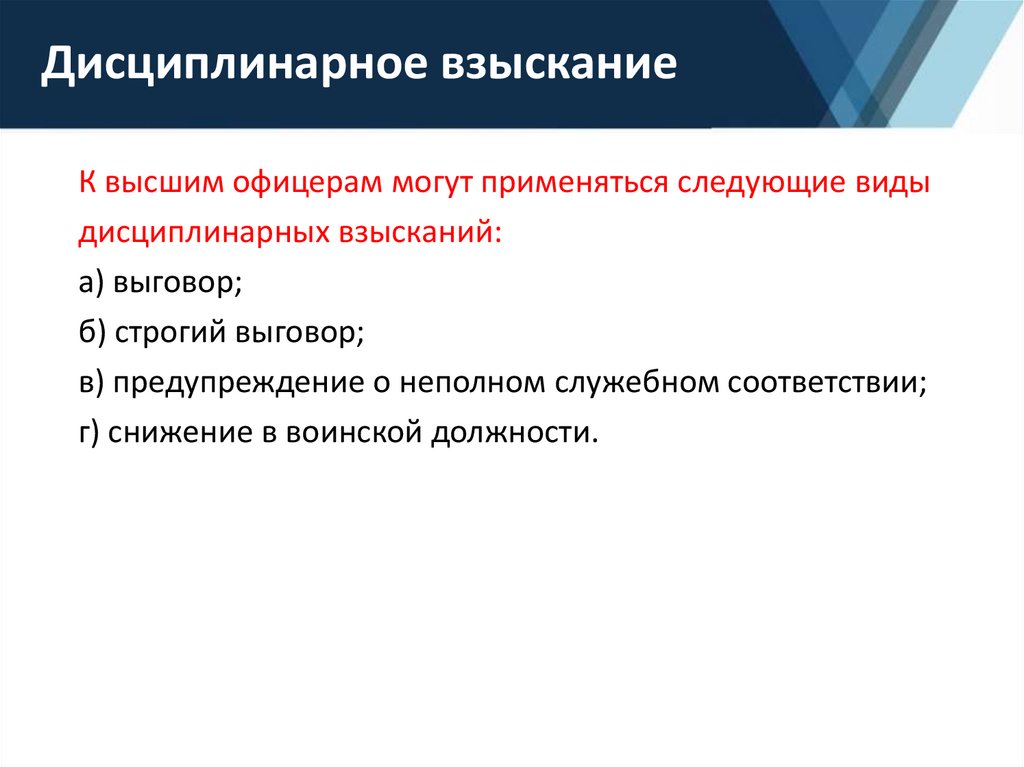 К высшим офицерам могут применяться следующие видыдисциплинарных взысканий: