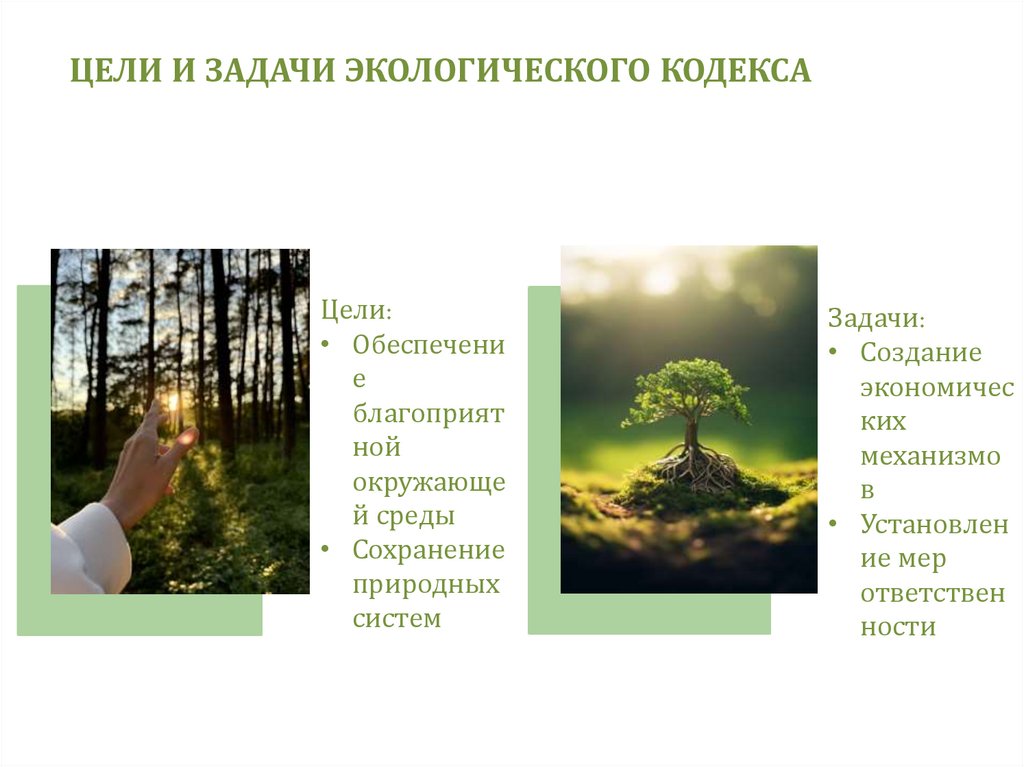 ЦЕЛИ И ЗАДАЧИ ЭКОЛОГИЧЕСКОГО КОДЕКСАЦели: