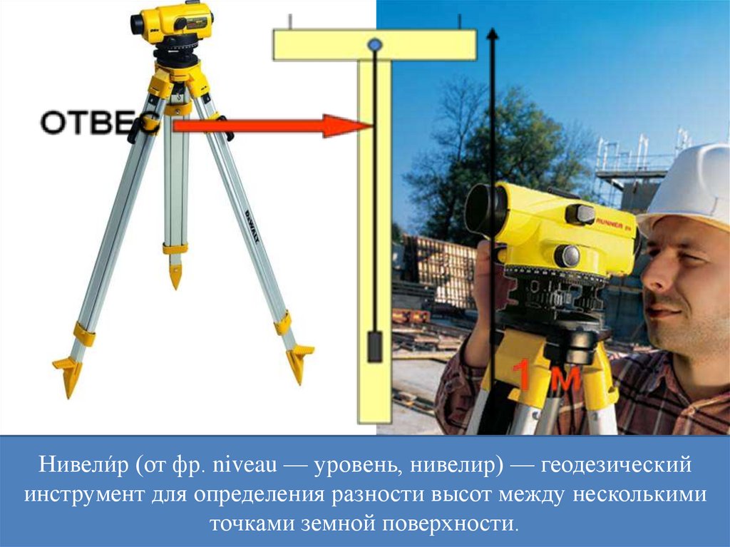 Нивели́р (от фр. niveau — уровень, нивелир) — геодезическийинструмент для определения разности высот между несколькими