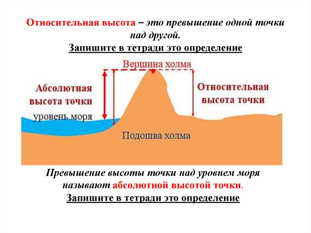 3. Изображение на плане неровностей земной поверхности. Абсолютная и относительная высота. Профессия топограф