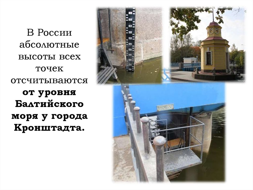 17. В России абсолютные высоты всех точек отсчитываются от уровня Балтийского моря у города Кронштадта.