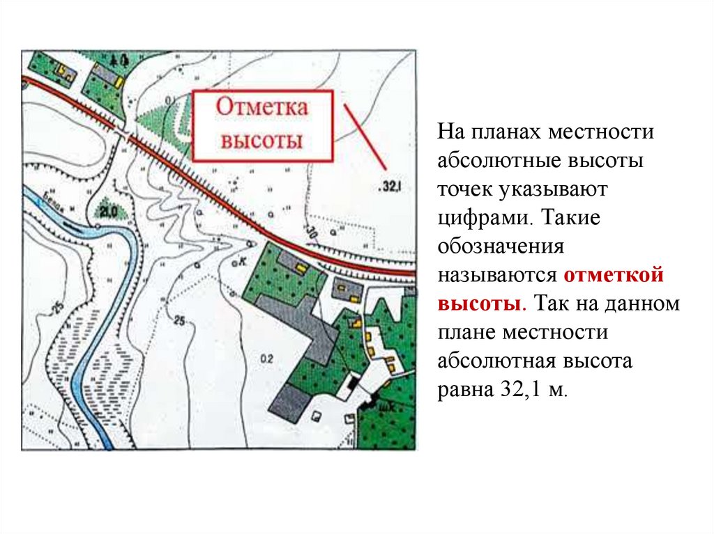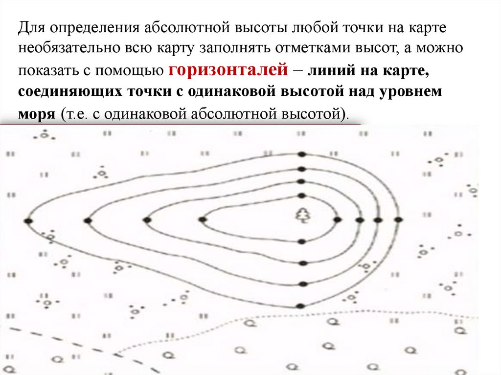 Для определения абсолютной высоты любой точки на картенеобязательно всю карту заполнять отметками высот, а можно