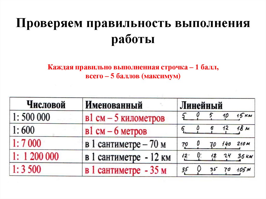 7. Проверяем правильность выполнения работы Каждая правильно выполненная строчка – 1 балл, всего – 5 баллов (максимум)