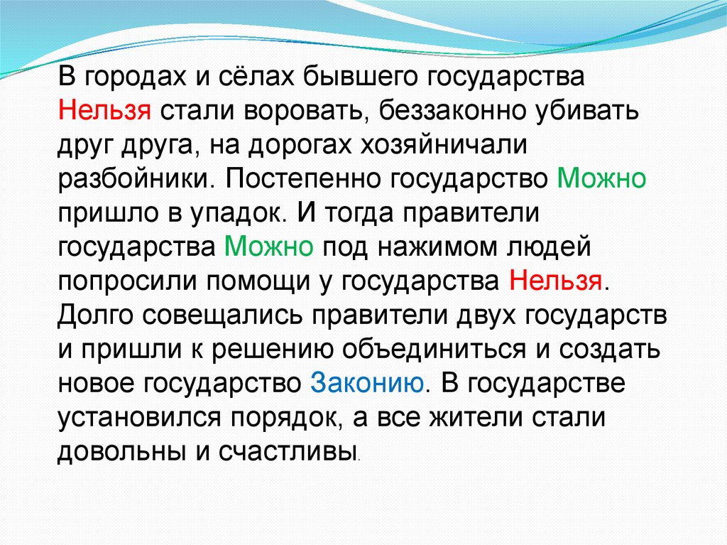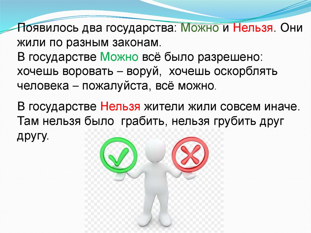 Появилось два государства: Можно и Нельзя. Онижили по разным законам.