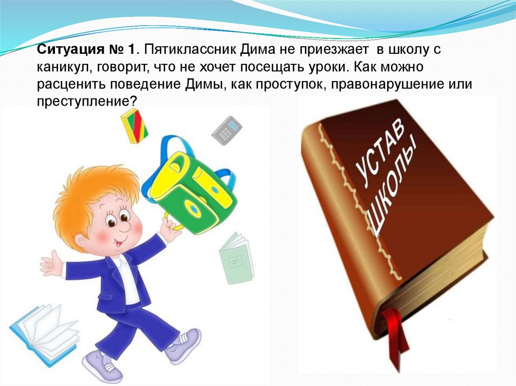 Ситуация № 1. Пятиклассник Дима не приезжает в школу сканикул, говорит, что не хочет посещать уроки. Как можно