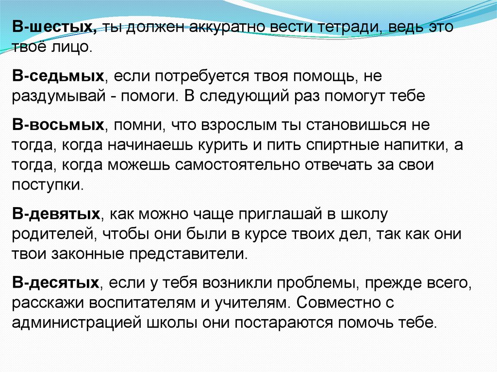 В-шестых, ты должен аккуратно вести тетради, ведь этотвоё лицо.