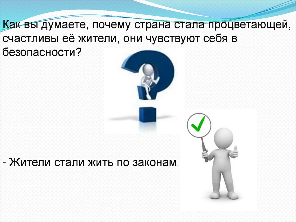 Как вы думаете, почему страна стала процветающей,счастливы её жители, они чувствуют себя в