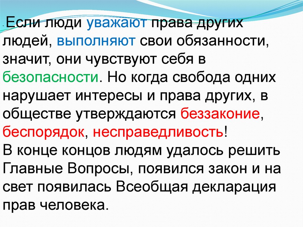 Если люди уважают права другихлюдей, выполняют свои обязанности,