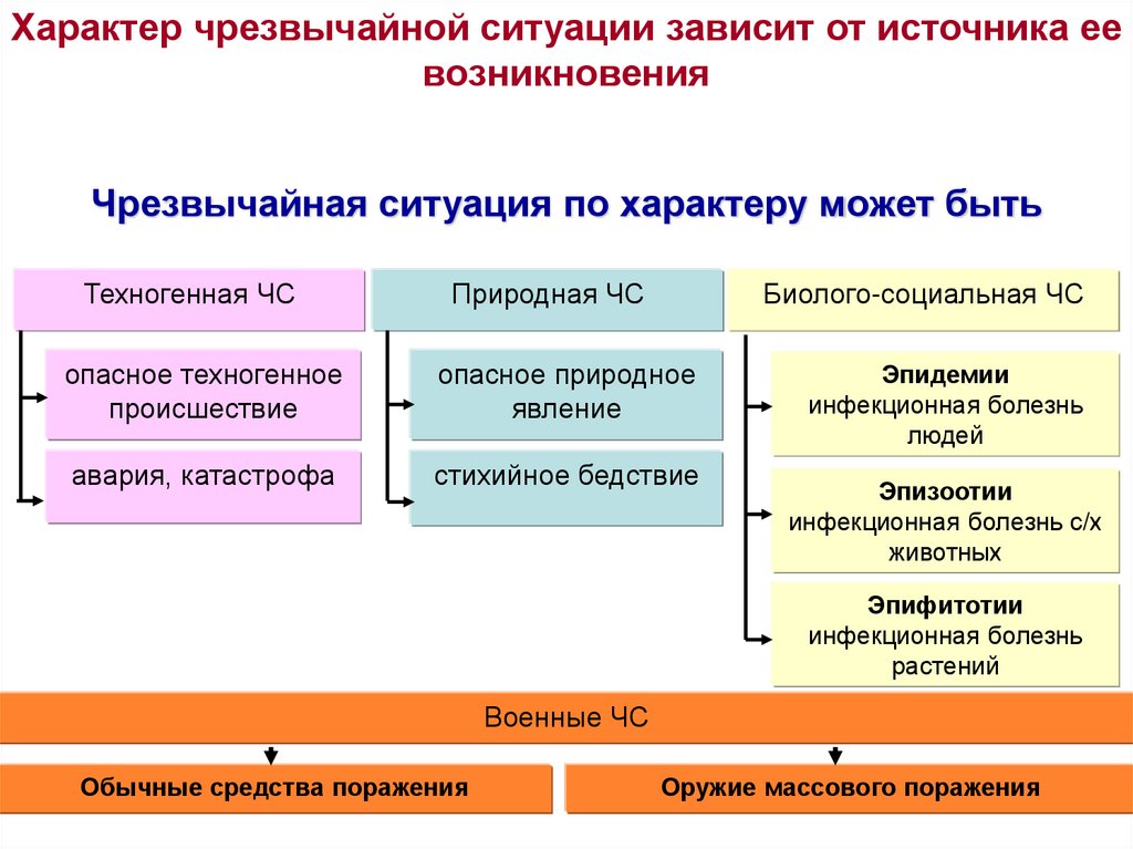 Характер чрезвычайной ситуации зависит от источника еевозникновения