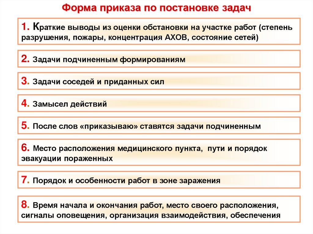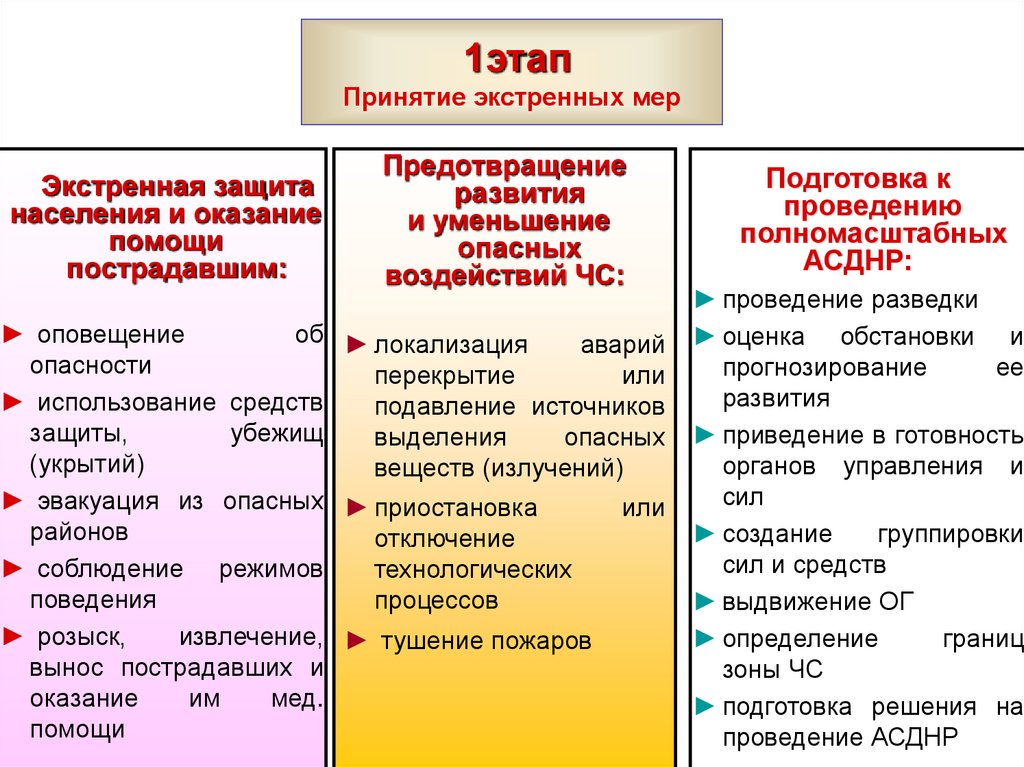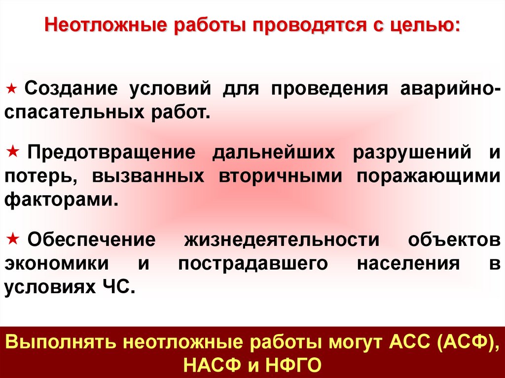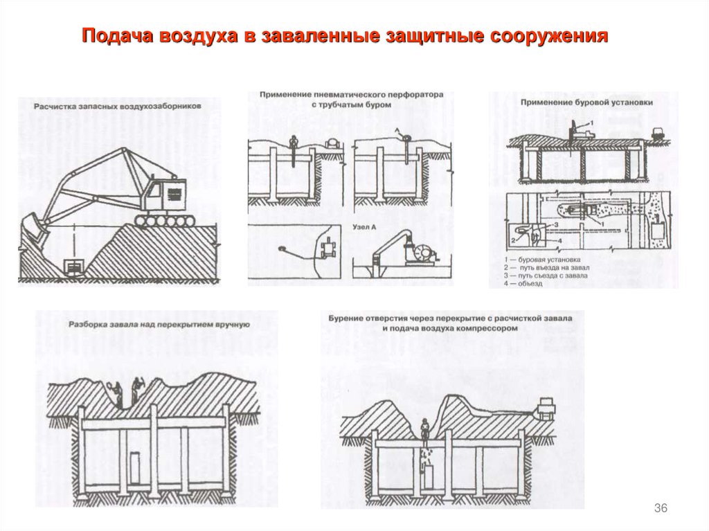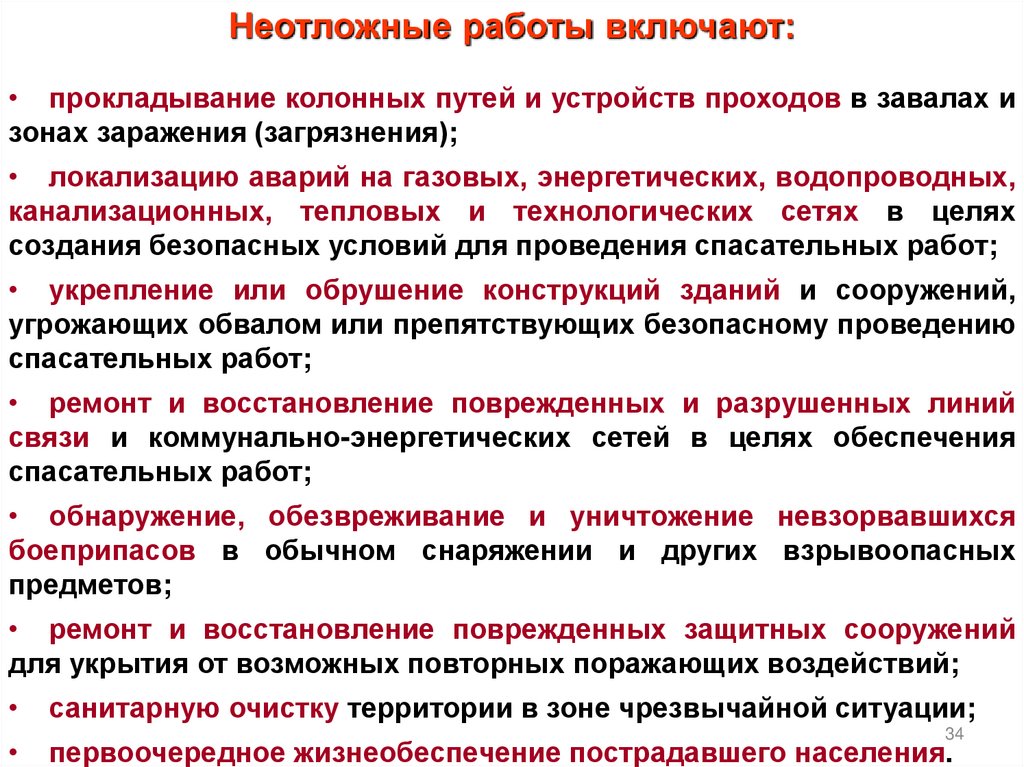 Неотложные работы включают:• прокладывание колонных путей и устройств проходов в завалах и