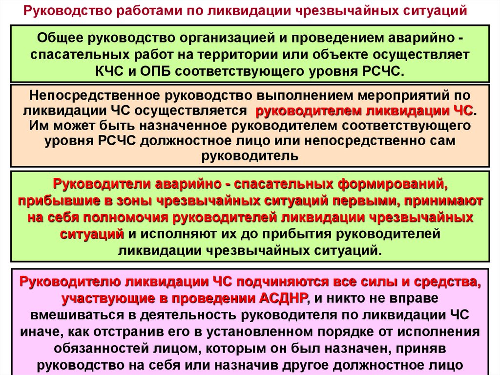 Руководителю ликвидации ЧС подчиняются все силы и средства,