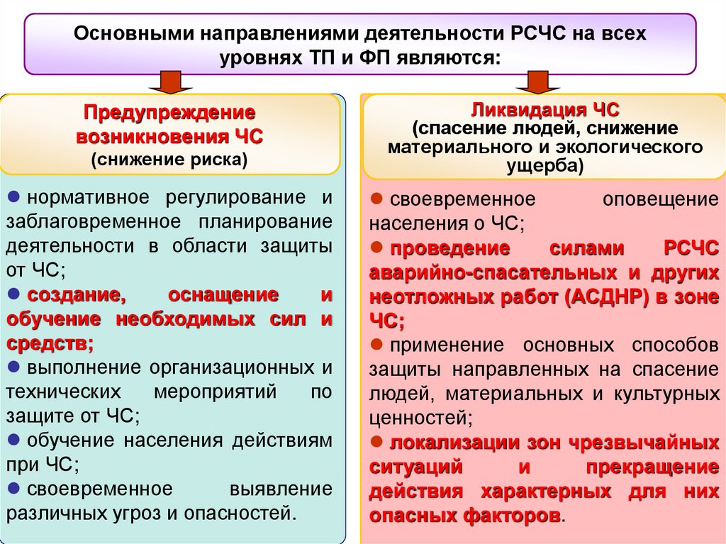 Основными направлениями деятельности РСЧС на всехуровнях ТП и ФП являются: