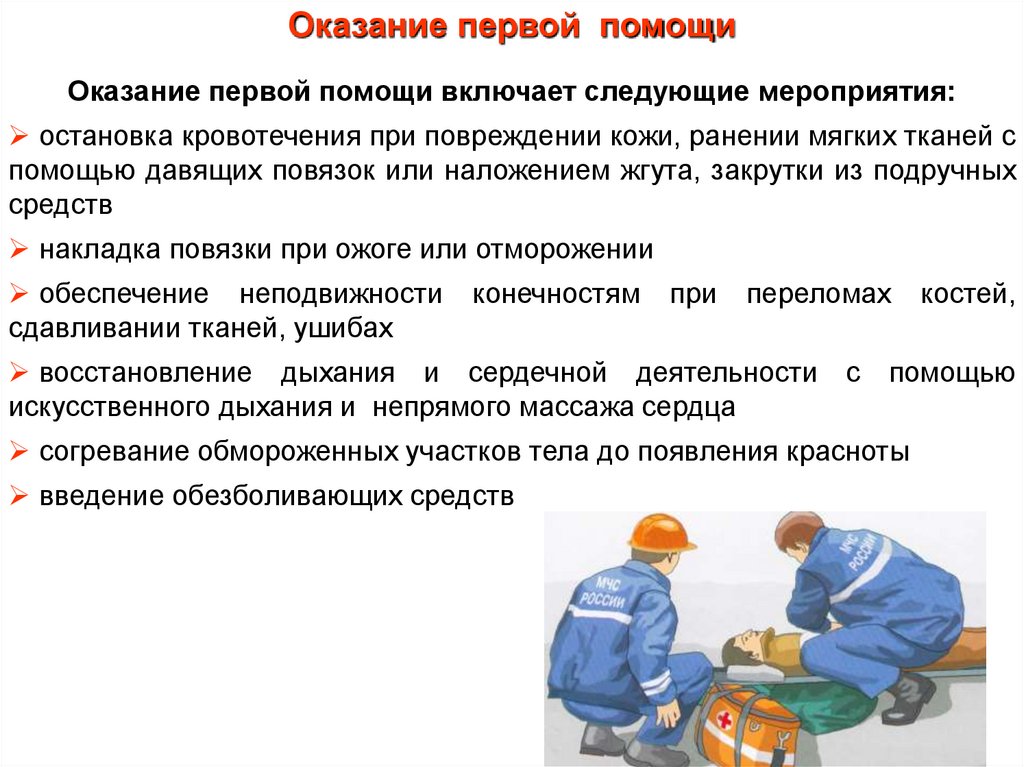 Оказание первой помощиОказание первой помощи включает следующие мероприятия: