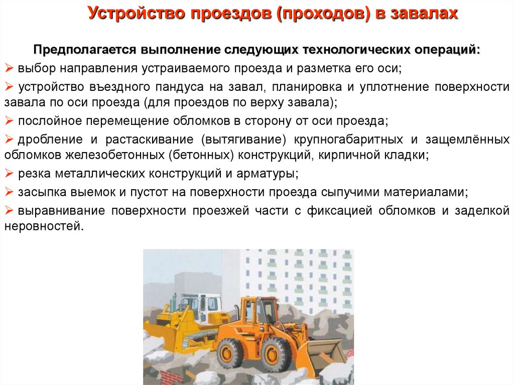 Устройство проездов (проходов) в завалахПредполагается выполнение следующих технологических операций: