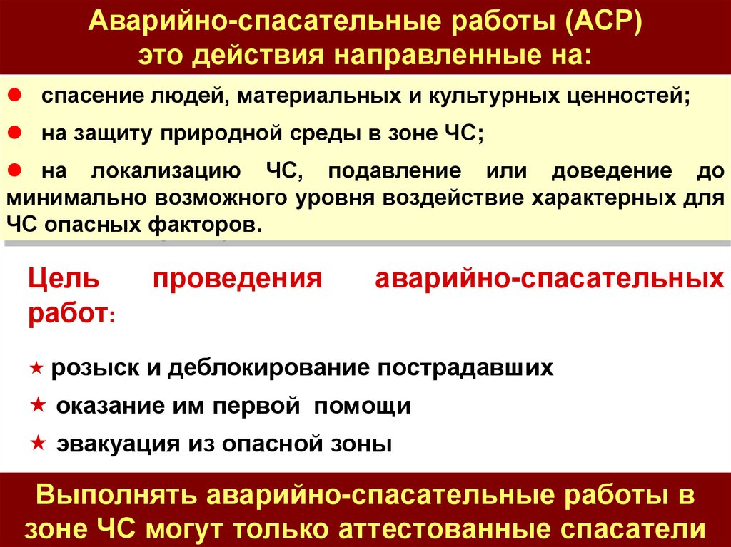 Аварийно-спасательные работы (АСР)это действия направленные на: