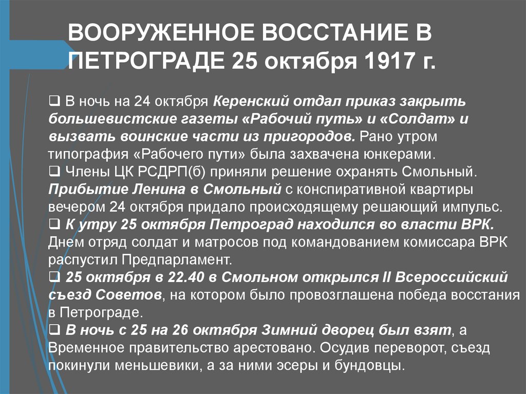 75. ВООРУЖЕННОЕ ВОССТАНИЕ В ПЕТРОГРАДЕ 25 октября 1917 г.