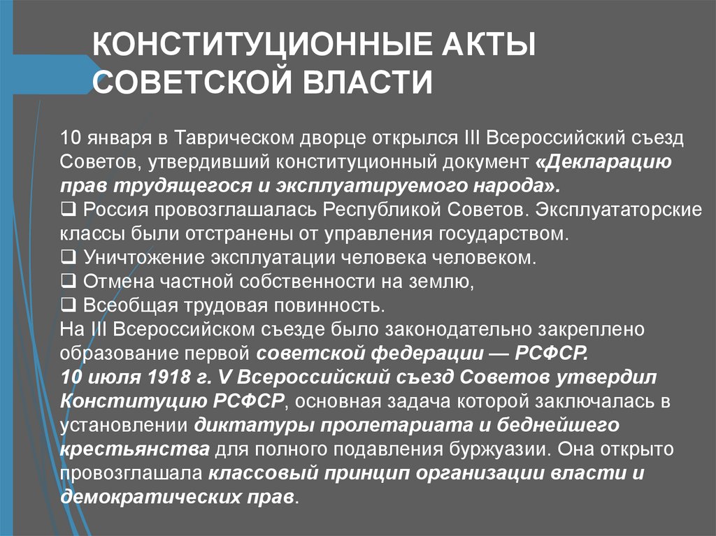 80. КОНСТИТУЦИОННЫЕ АКТЫ СОВЕТСКОЙ ВЛАСТИ