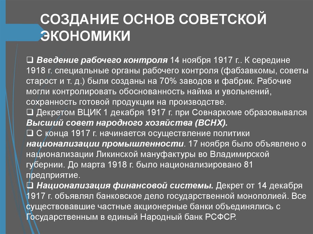 81. СОЗДАНИЕ ОСНОВ СОВЕТСКОЙ ЭКОНОМИКИ