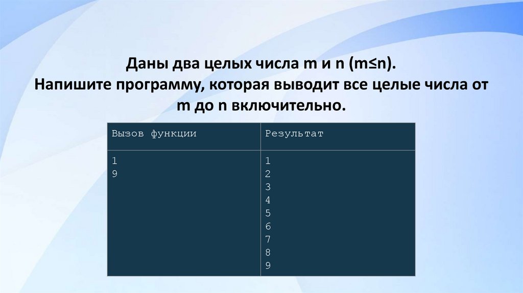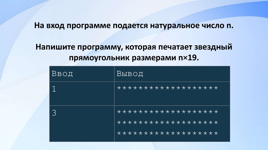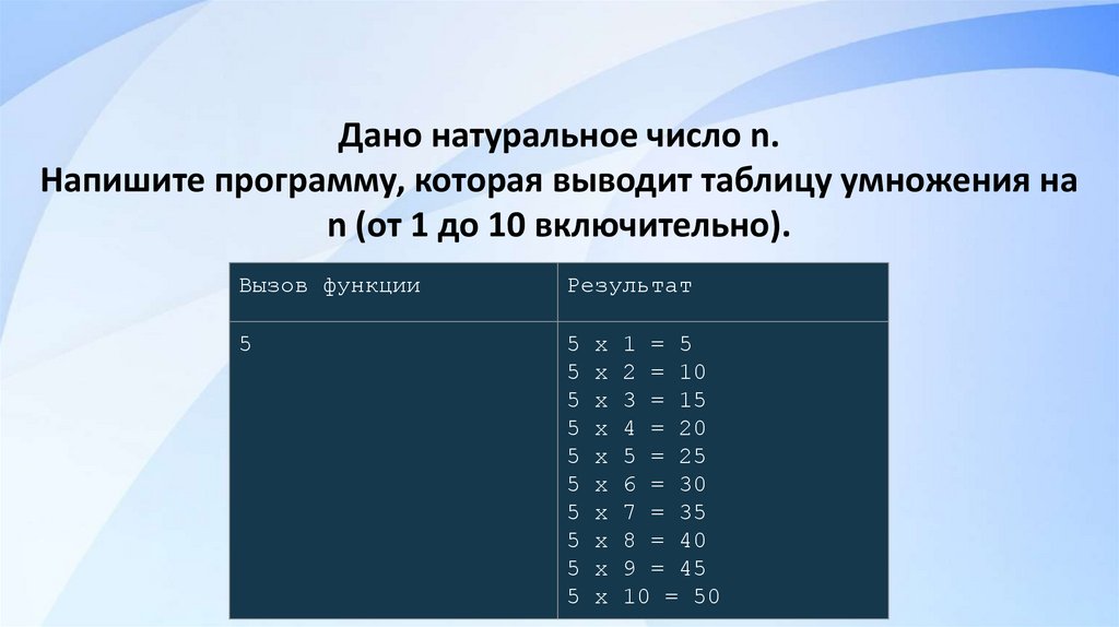 Дано натуральное число n, (n≤ 9).Напишите программу, которая печатает таблицу размером
