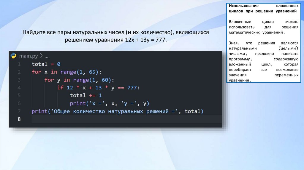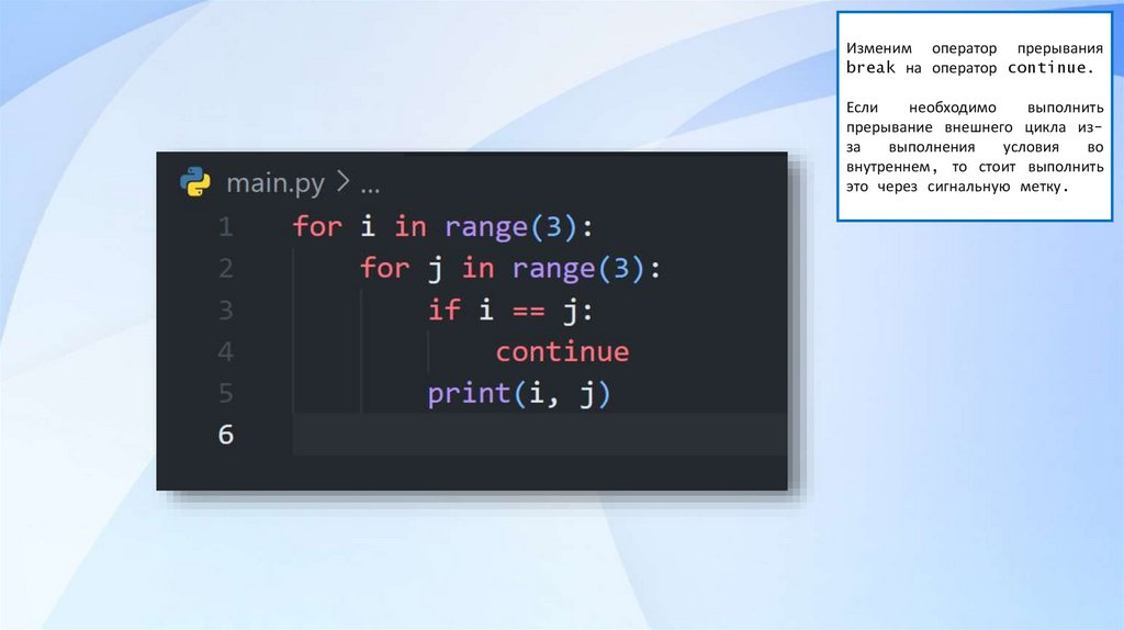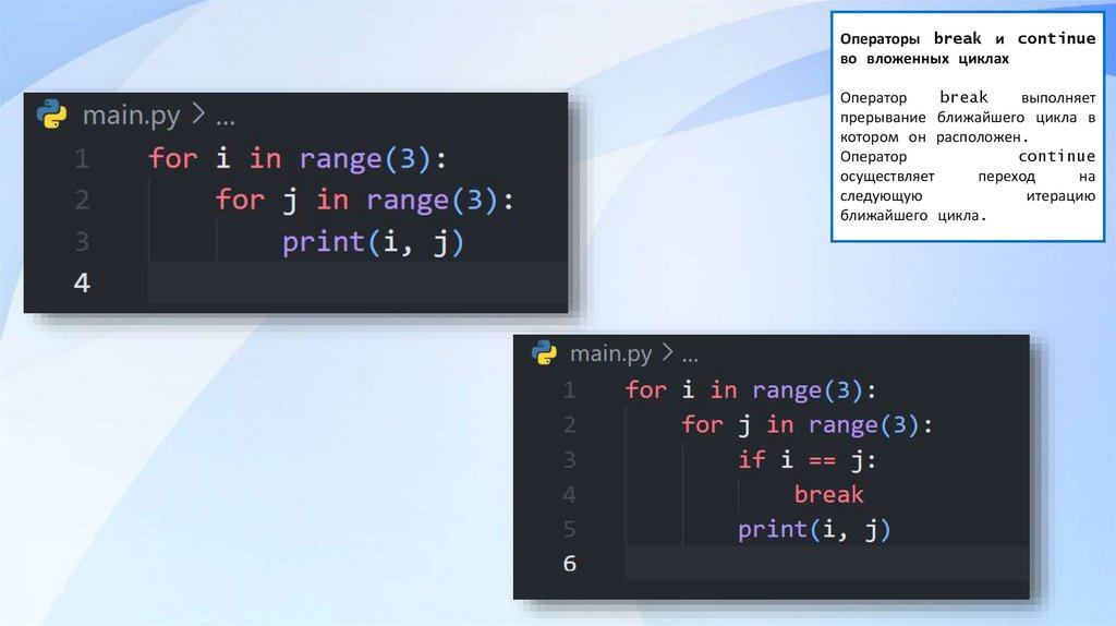 ● Вложенные циклы завершают свои итерации быстрее, чем внешние