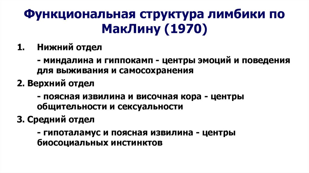 2) лимбическая система, отвечает за эмоциональные состояния человека.