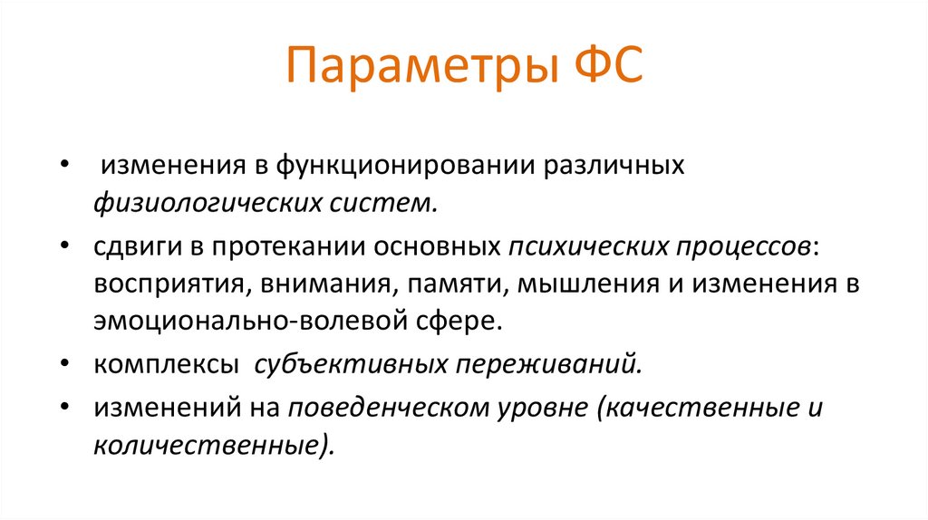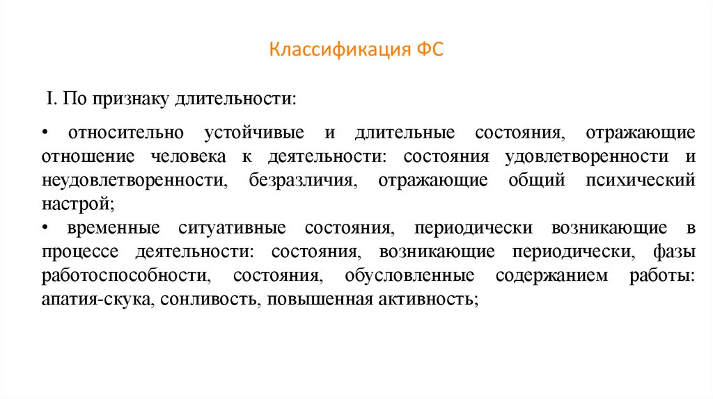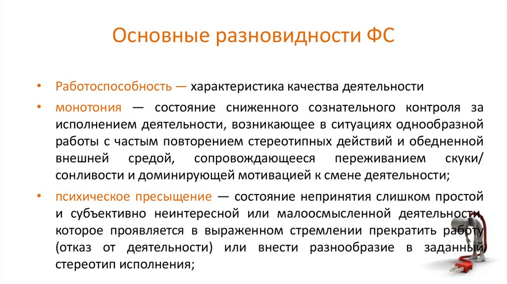 Основные разновидности ФС• Работоспособность — характеристика качества деятельности