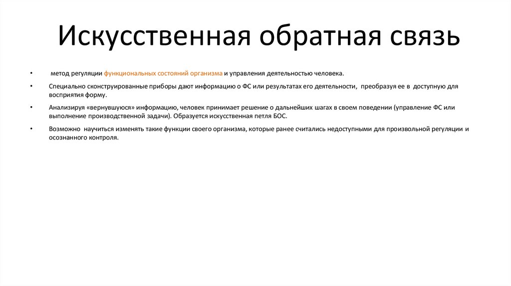Искусственная обратная связьметод регуляции функциональных состояний организма и управления деятельностью человека.