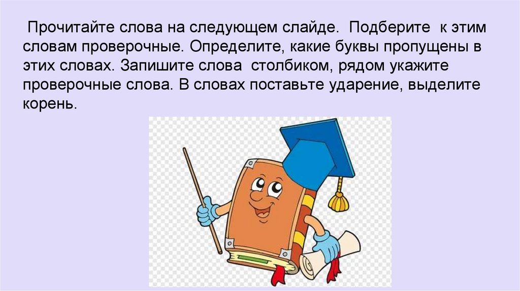 Прочитайте слова на следующем слайде. Подберите к этимсловам проверочные. Определите, какие буквы пропущены в