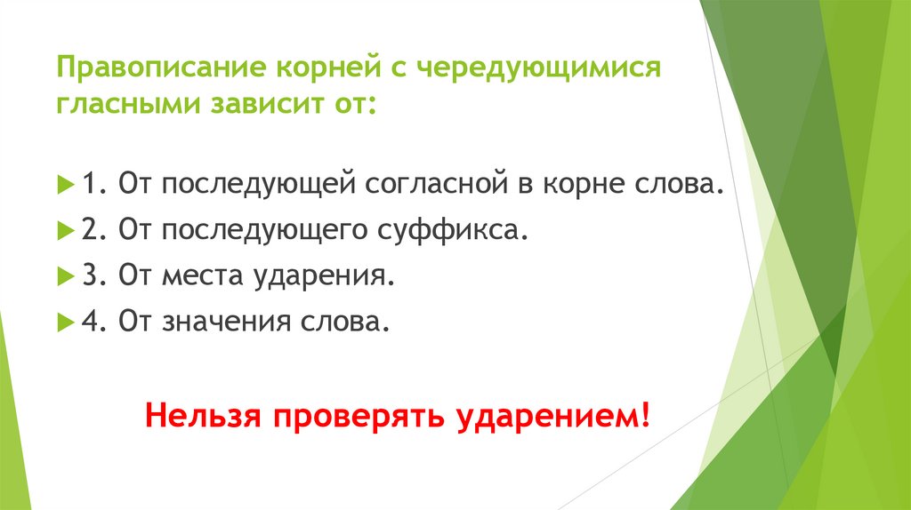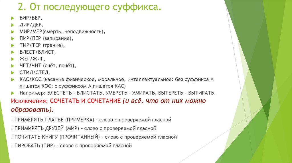 1. От последующей согласной в корне слова.2. От последующего суффикса.