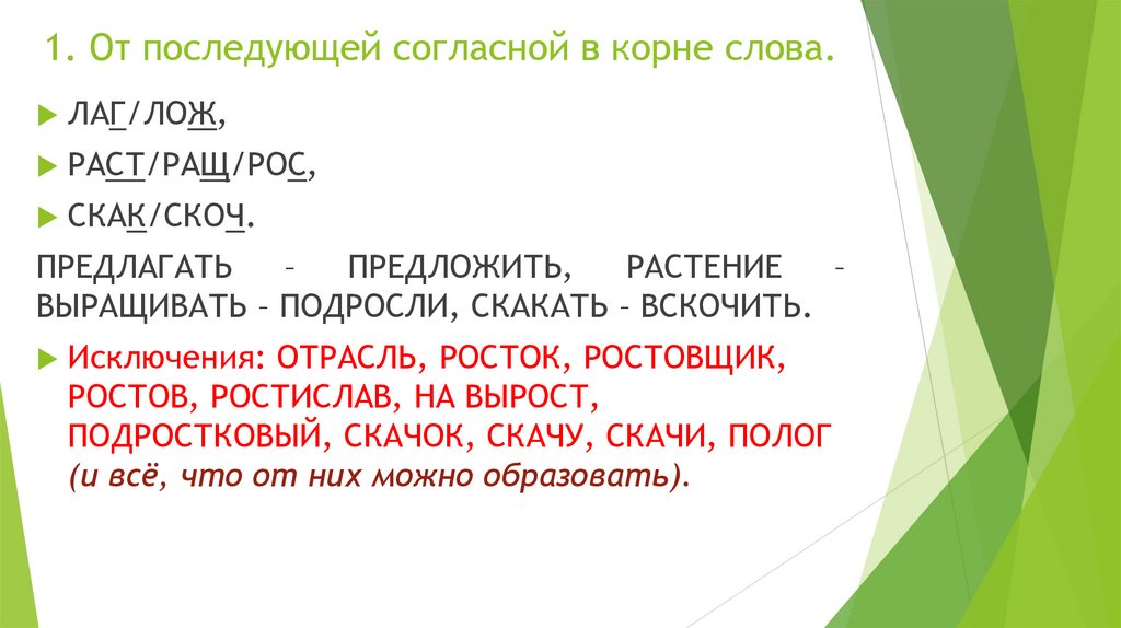 ЛАГ/ЛОЖ,РАСТ/РАЩ/РОС,
