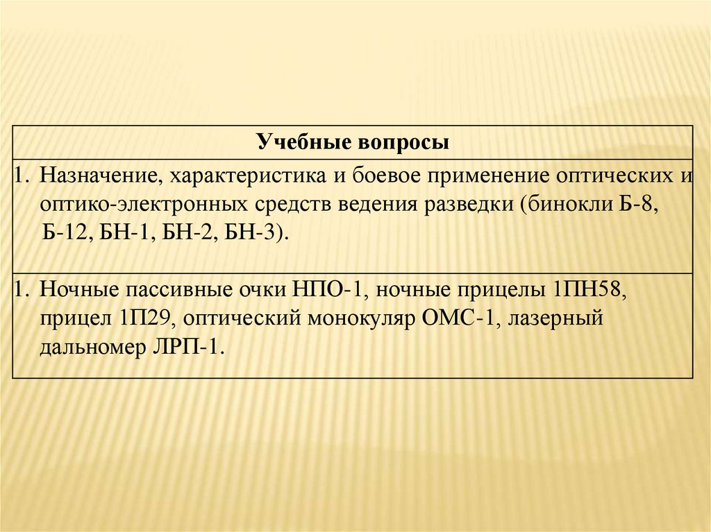 Учебные вопросы1. Назначение, характеристика и боевое применение оптических и