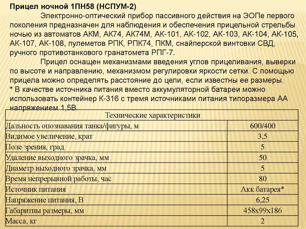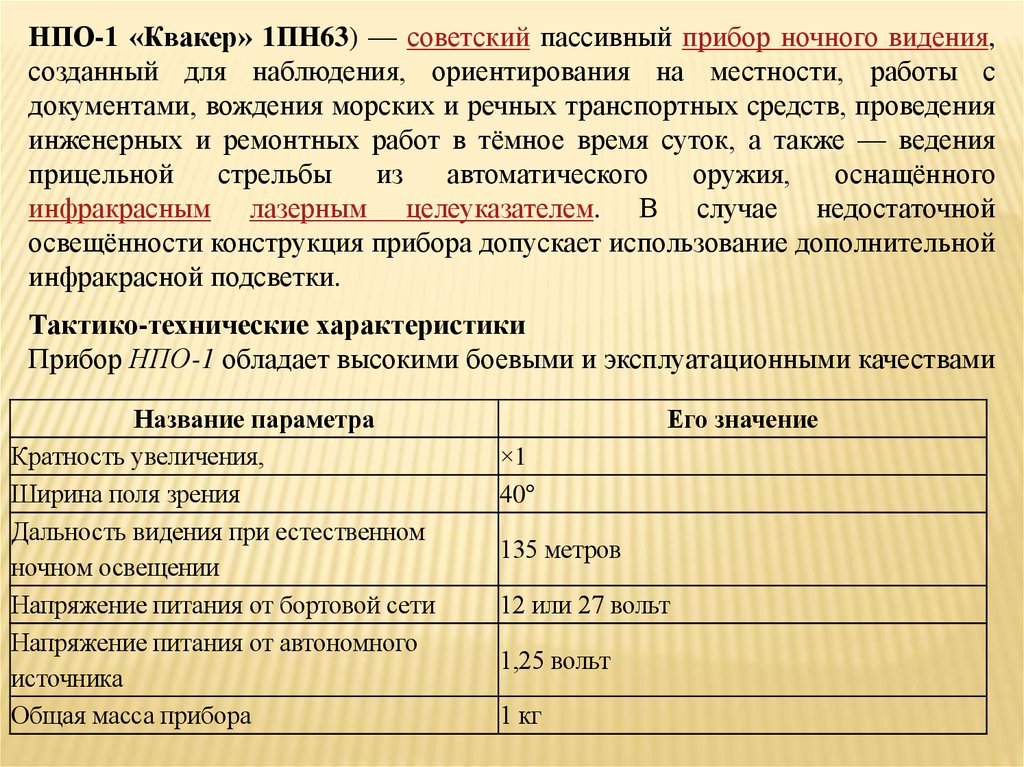 1. Ночные пассивные очки НПО-1, ночные прицелы 1ПН58,