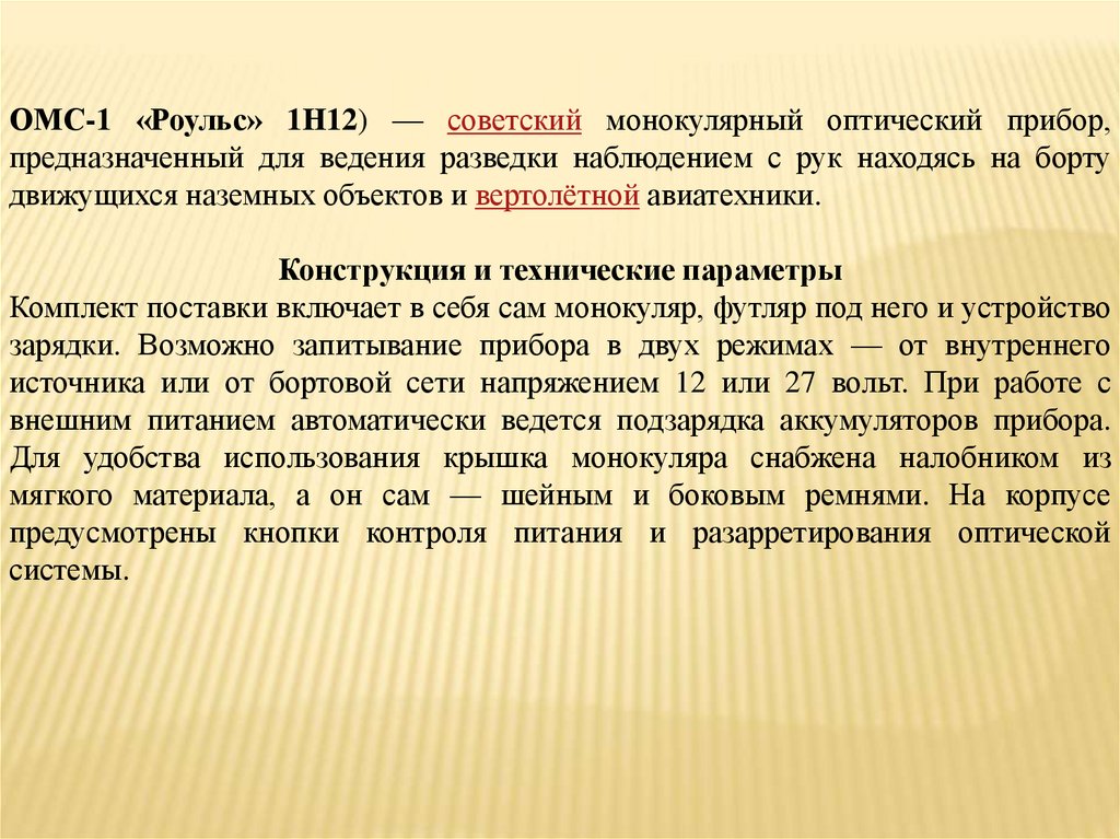 ОМС-1 «Роульс» 1Н12) — советский монокулярный оптический прибор,предназначенный для ведения разведки наблюдением с рук находясь на борту