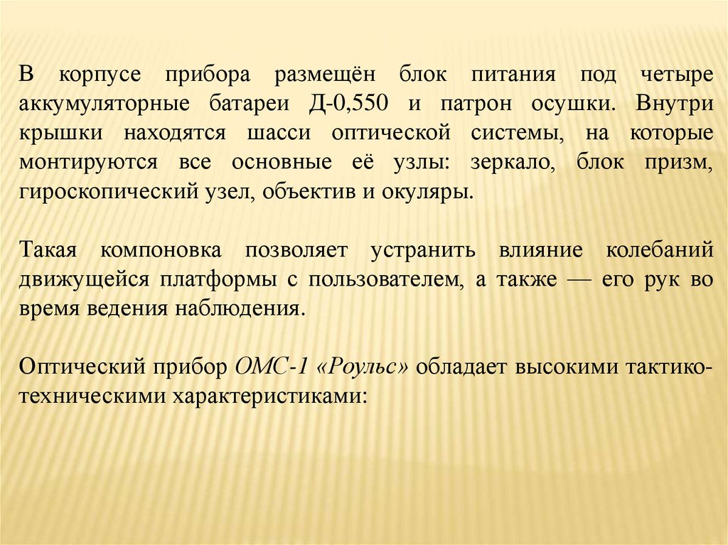 Оптический прибор ОМС-1 «Роульс» обладает высокими тактикотехническими характеристиками: