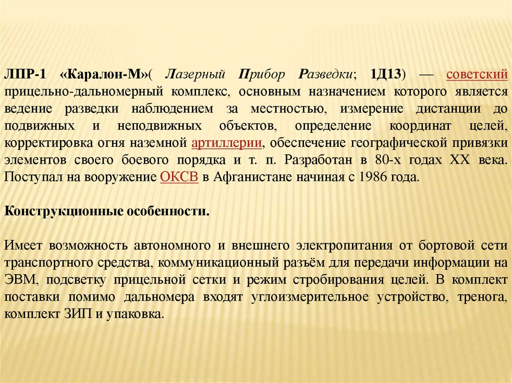 ЛПР-1 «Каралон-М»( Лазерный Прибор Разведки; 1Д13) — советскийприцельно-дальномерный комплекс, основным назначением которого является