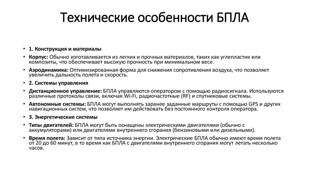 20. Технические особенности БПЛА